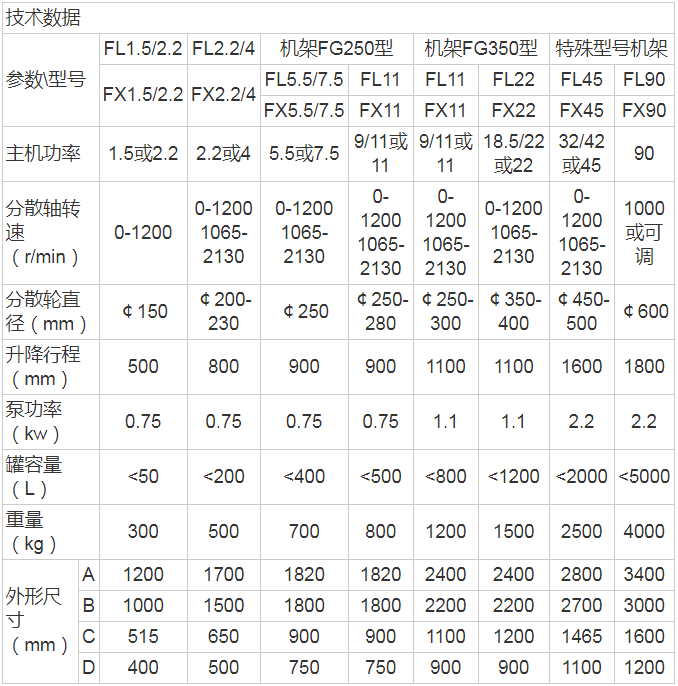 类型 高速分散机 型号 FL型